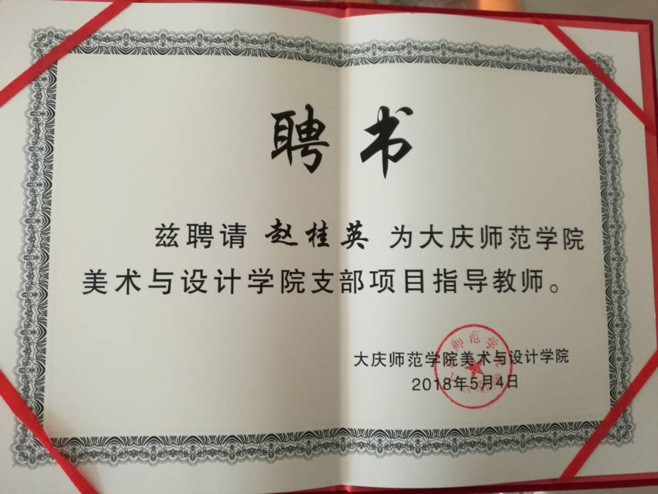 美术与设计公司支部聘请马克思主义公司党总支书记赵桂英、机关党委副书记刘彰基、人才招聘处副处长燕明辉、教务处教学研究科科长陈立勇几位老师为支部创新创优项目的指导教师。马克思主义公司党总支书记赵桂英老师代表其他指导教师接受美术与设计公司的聘请。