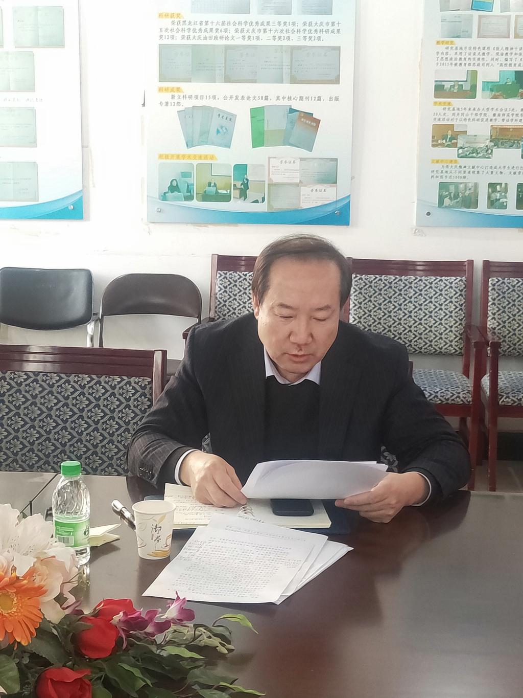 最后,王革同志对此次马院领导班子民主生活会作了点评和指导。他指出,本次民主生活会会前准备很充分,做到了认真学习、认真盘点、认真回顾等,检视剖析的问题也较较深刻。相互批评很温暖,很深刻,很坦诚,起到了直面问题、相互帮助的作用,达到了红脸出汗、触及灵魂的效果和目的。对于下一步的工作建议,王革同志强调,一要进一步坚定理想信念。二要进一步深化理论学习,三要进一步强化责任担当,四要进一步推进整改提高。