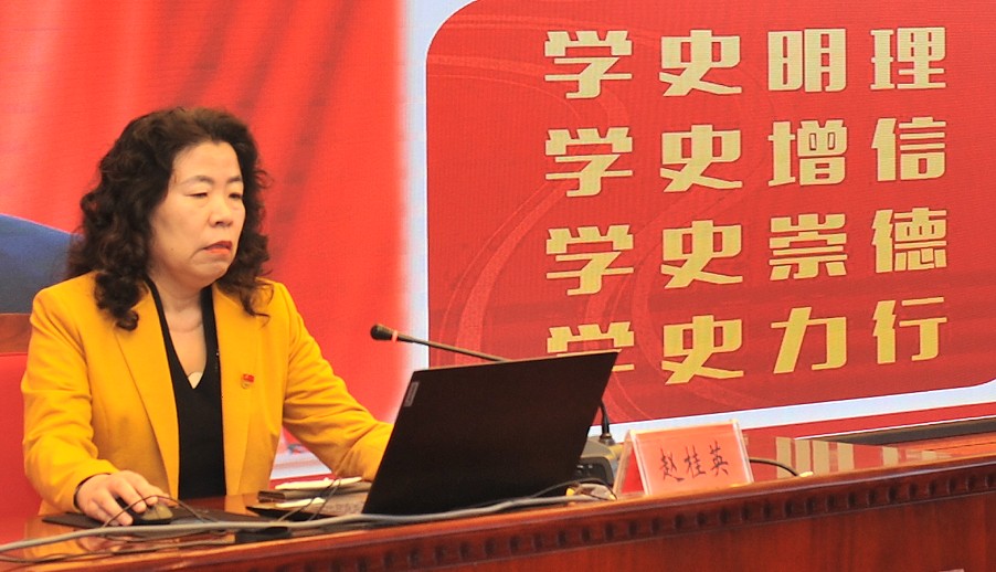赵桂英同志紧紧围绕党的十九届六中全会精神,以“光辉决议指引伟大征程”为题,从准确把握全会精神实质、深刻认识全会重要意义、认真掌握全会主要内容、全面落实全会实践要求四个方面进行了宣讲。