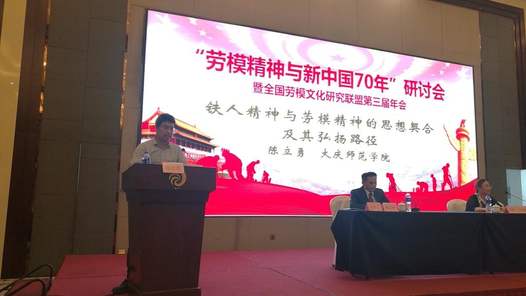 在主题演讲环节,公司大庆精神研究基地副主任陈立勇副教授以《铁人精神与劳模精神的思想契合及其弘扬路径》为题,从铁人精神基本内涵形成的历史文献考察、铁人精神与劳模精神思想契合的四重维度、高校传承弘扬劳模精神的三点思考等三个方面阐释了铁人精神与劳模精神的本质联系,发言反响热烈,受到与会专家学者的好评。