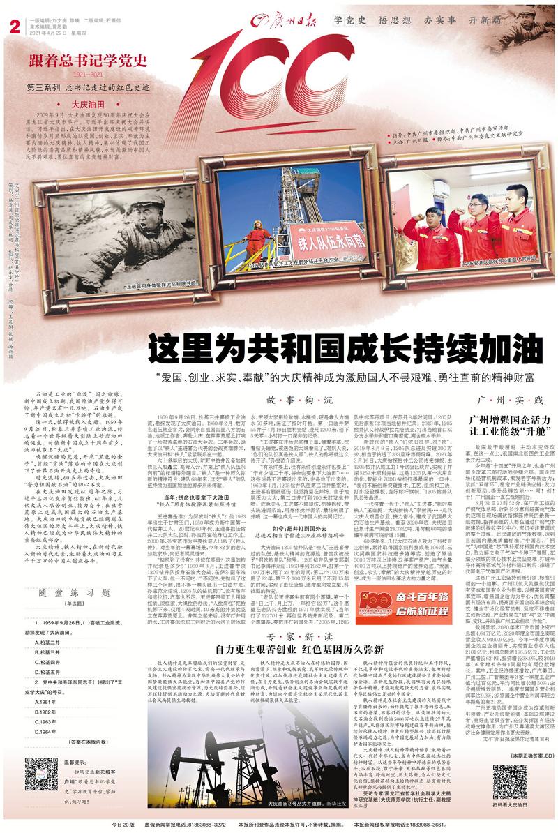 一代接着一代干,“铁人”王进喜、“新时期铁人”王启民、“大庆新铁人”李新民……几代大庆人艰苦创业、接力奋斗,建成了我国最大的石油生产基地。截至2020年底,大庆油田已累计生产原油24.33亿吨,用荷载60吨的油罐车装满可绕赤道15圈。