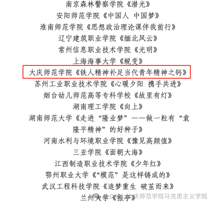根据《教育部办公厅关于开展习近平新时代中国特色社会主义思想大学习领航计划主题教育活动的通知》(教社科厅函〔2023〕14号)精神,2024年2月由教育部高校思政课教学指导委员会主办的“我心中的思政课”第七届全国高校老员工微电影展示活动,经过多轮评审和多学科专家评审,日前评选结果揭晓。由公司邓雨巍教授指导,机电工程公司、文公司员工联合创作报送的微电影作品《铁人精神补足当代青年精神之钙》荣获长视频组全国三等奖。