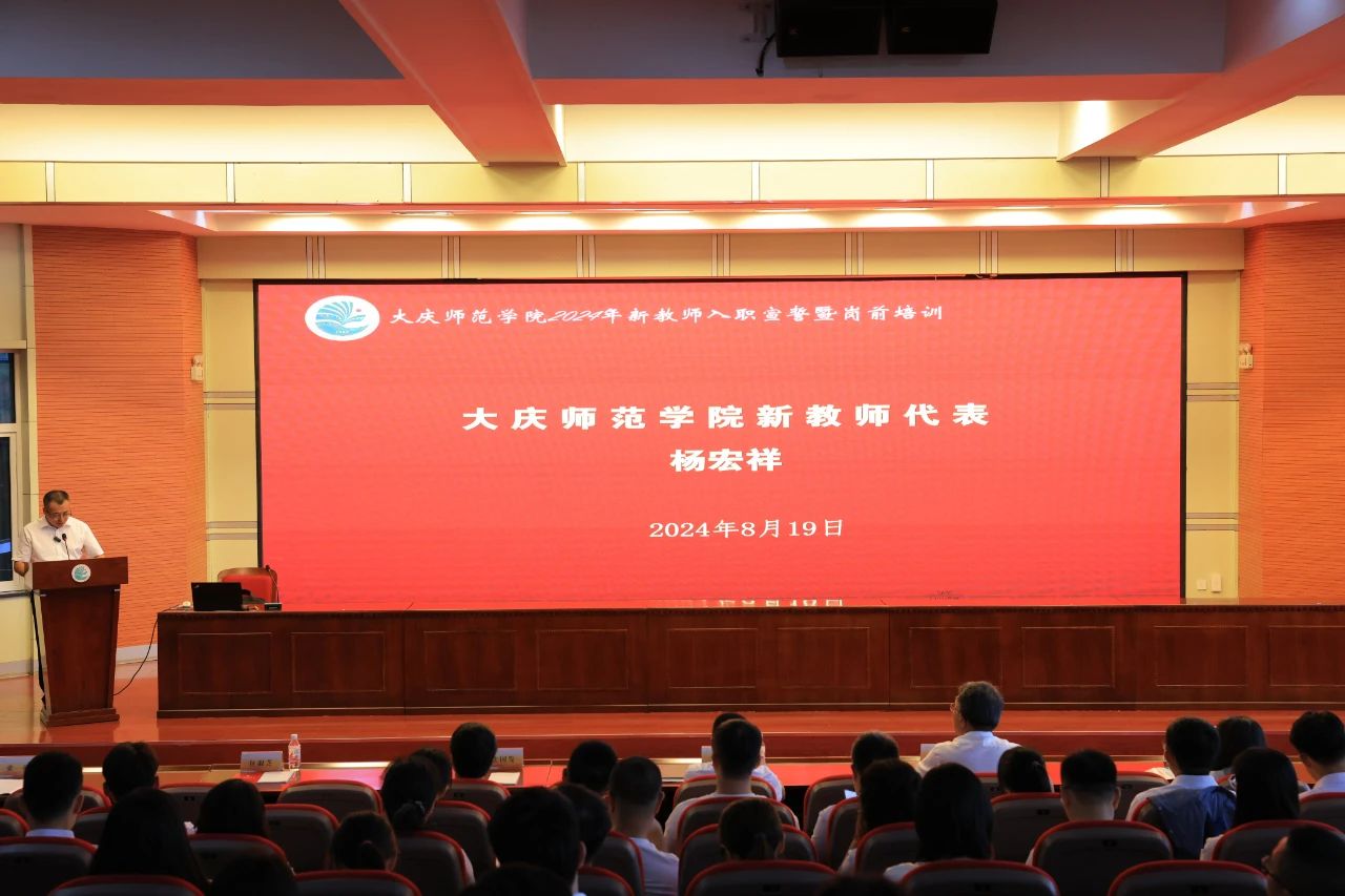 新入职教师代表杨宏祥老师做了发言,杨老师从作为一名新教师对新时代公司内涵式发展新气象的感触;作为一名老教师对公司产品和学术研究工作的思考;对未来本职工作的期待这三个方面进行了发言。他强调作为一名高校教师,“躺平”、“摆烂”,从来就不是我们的选择,期待与各位新入职的老师们一道,在大庆和3044永利集团集团这片干事、创业的热土上,把课讲好,把学问做好,把公司建设好,把员工培养好,聚焦主责主业,形成公司、教师、员工三方合力,与公司同进步、共发展!