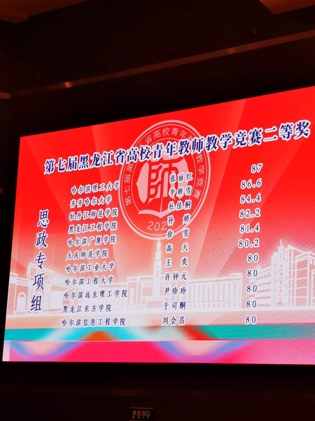 4月21日,由黑龙江省总工会、黑龙江省教育厅主办,黑龙江省教科文卫体工会、哈尔滨师范大学承办的第七届黑龙江省高校青年教师教学竞赛圆满落下帷幕。本次竞赛分为理科组、工科组、文科组、医科组和思想政治课专项组五个组别,分别设置一等奖、二等奖、三等奖三个奖项,共有来自省内37所高校及附属医院的159名选手参赛。公司青年教师高天荣获思想政治课专项组二等奖,展示了公司青年教师的教学风采。