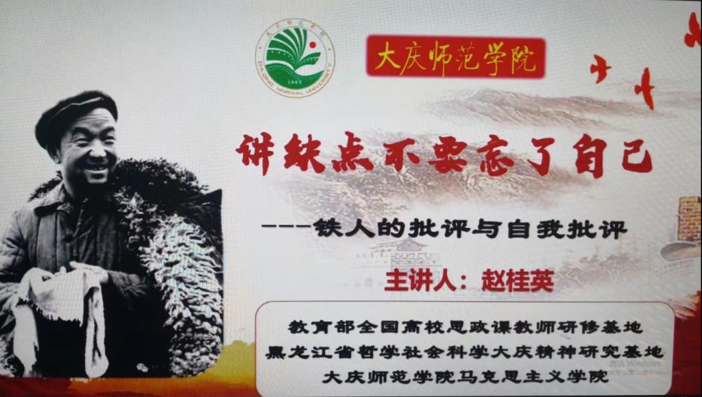 马院大庆精神研究基地自2017年开始连续3年为省干部培训网络公司录制了以铁人王进喜的“五讲”为系列的课程至此已达到3门,前两门分别是陈立勇主任录制的《讲进步不要忘了党--靠内生动力阔步前行》、张文彬副教授录制的《讲本领不要忘了群众--铁人的群众观》。下一步,计划逐步将“五讲”中的“讲成绩不要忘了大多数、讲现在不要割断历史”录制完成,形成“五讲”的精讲系列课程,服务龙江干部培训、传承弘扬铁人精神、展现庆师风采和特色。