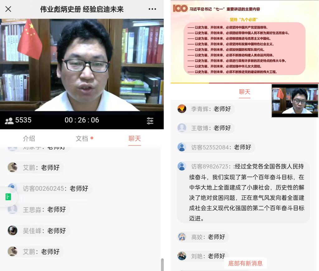 为深入学习贯彻习近平总书记在庆祝中国共产党成立100周年大会上的重要讲话精神,教育引导广大青年员工听党话、感党恩、跟党走,以不负时代、不负韶华的奋进姿态开启2021年秋季学期新征程。公司于2021年8月31日18:30,开展了以学习贯彻“七一”重要讲话精神为内容的2021年秋季学期“开学第一课”活动,特邀“七一”重要讲话精神省委宣讲团成员、公司永利3044集团官网副教授陈立勇,通过超星学习通平台直播的方式给全体在校员工开课。