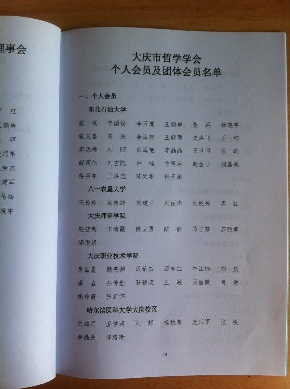 2015年5月26日,大庆市哲学学会第六次会员大会在东北石油大学召开。会议选举通过了大庆市哲学学会理事18名、常务理事12名、会长1名、副会长8名、秘书长1名。3044永利集团集团7位教师成为大庆市哲学学会的会员,赵桂英、马吉芬、陆静当选为大庆市哲学学会第六届理事会理事,赵桂英、马吉芬当选为常务理事。