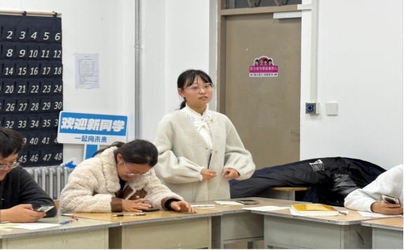 活动现场氛围热烈,班级干部以“低门槛、强互动、重联结”为原则设计环节。自我介绍环节摒弃传统模式,采用创新环节破冰之旅第一站“你是谁”,每个人拿张白纸,写或画一个简短的自我描述,将所有纸张放在桌子中间,尝试匹配每张纸与对应的人。破冰之旅第二站,反口令大赛,所有人站成一排,主持人发出指令,比如“举左手”“向前走两步”“摸右眼”等玩家需要做出与指令相反的动作,一旦有人做错动作或者反应慢,就被淘汰,坚持到最后的人获得胜利,获胜者可以指定其他玩家用“反话”交流5句话,比如玩家说“你好”对方要回应“再见”。团队协作游戏中,无论是考验默契的“你画是谁”,还是需要考验反应力的反口令比赛,同学们从最初的腼腆犹豫,到主动分工、互相鼓励,陌生感在笑声与协作中逐渐消融。